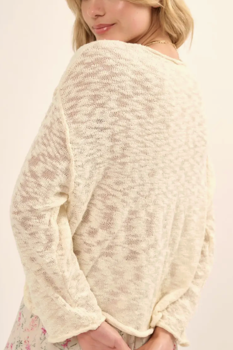 The Samantha Long Sleeve Burnout Knit Sweater is your go-to layering essential for effortless spring style. Crafted from super soft, lightweight fabric, this piece drapes beautifully without adding bulk, making it perfect for building versatile outfits. The subtle burnout knit texture adds visual interest while maintaining that cloud-like comfort. Layer it over basics, under jackets, or wear solo on mild days. A timeless wardrobe staple that transitions seamlessly from season to season.